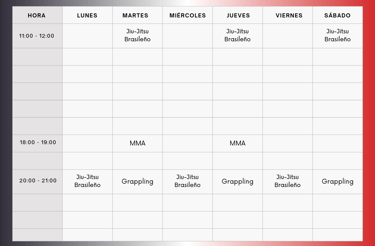 Somos un gimnasio especializado en Boxeo y Brazilian Jiu-Jitsu afiliado a Gracie Barra, ubicado en Murcia, donde entrenan tanto principiantes como competidores. Nuestro objetivo es ofrecer un entorno seguro y profesional en el que desarrolles tu condición física, mejores tu técnica y ganes confianza en ti mismo. Trabajamos con una metodología estructurada de Gracie Barra, basada en la disciplina, el respeto y la evolución constante, adaptando las clases a diferentes niveles y edades. Más que un gimnasio, somos una comunidad: aquí encontrarás compañeros que te apoyan, entrenadores implicados en tu progreso y un espacio donde crecer tanto a nivel deportivo como personal.